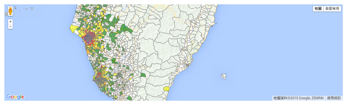 最近台灣登革熱的疫情還在持續,而這張地圖整合了全省各地的疫情回報資料,可以看到登革熱散佈的情況。