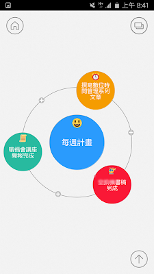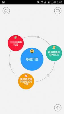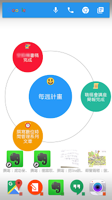 而使用 Mindly 的優點如下圖所示,他的格局是一個衛星環繞地球的宇宙,而這樣的圓形擺在手機桌面上可以很清楚的讀出內容,看起來也好看。
