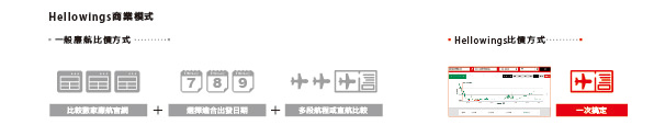「但是,這些網站上秀出的結果,幾乎都是一般航空公司,很少廉航」,徐向賢說。因此Hellowings第一個的特色就是專攻廉航比價,儘管部分比價網站也有提供少數廉航資訊,但僅限特定航空或航線,資料不完整自然也影響到比價的精準度。