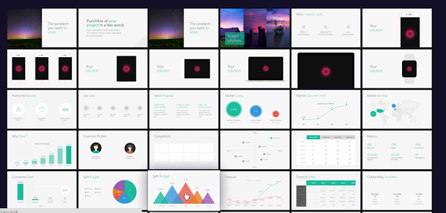 任何人都可下載這份擁有 40 多張投影片模板的範本檔案,裡面已經根據各種募資與銷售需求,製作好所有需要的橋段與圖表,我們只要套用自己的數據、替換自己的圖檔、調整適合自己產品風格的顏色即可。