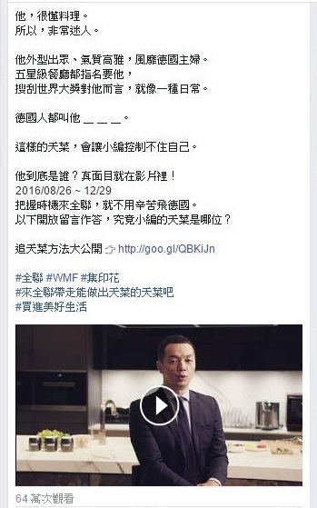 舉例來說,本土知名連鎖品牌全聯善於將內容以影片的手法介紹給大眾,並且以幽默的口吻將原本生硬的購物資訊傳遞出去,成功在短短一天內吸引64萬人次觀看以及將近400則的分享。