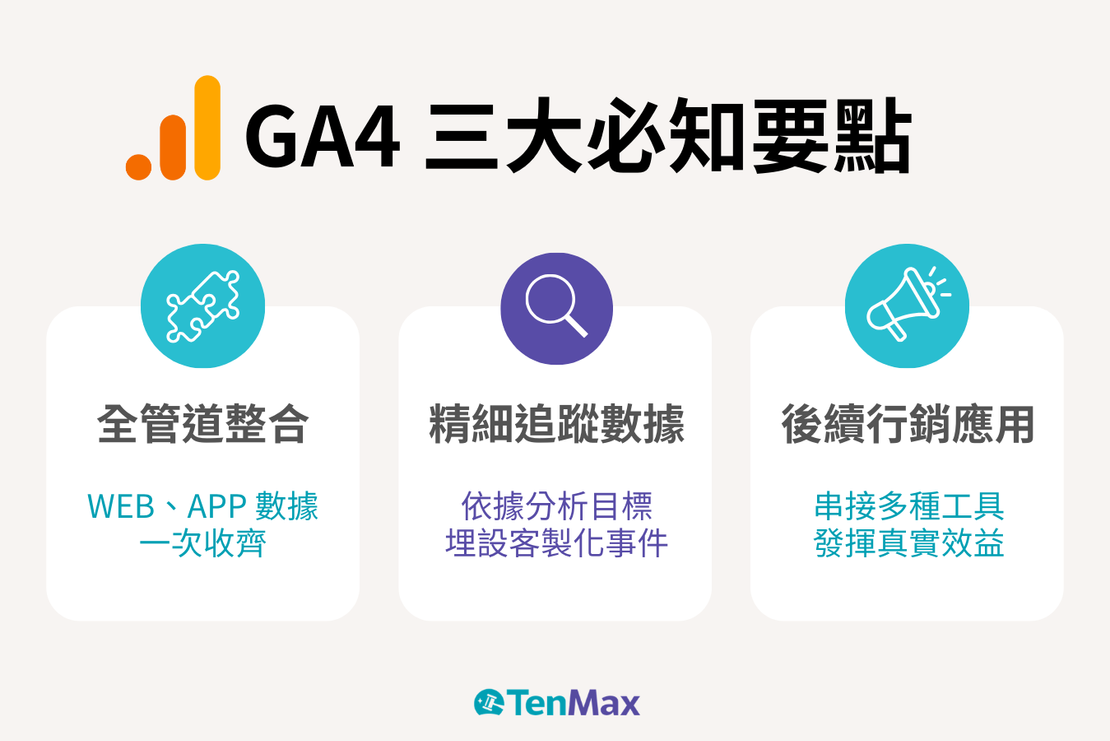 對於擁有自家官網的品牌而言,網站數據無疑是最重要的第一方數據來源;若能妥善追蹤、分析網站數據,有助於預測用戶行為、優化網站體驗,進而提升整體行銷品質。其中,GA4 便是業界最普及且免費的網站分析工具;以下是運用 GA4 時,必知的三大要點: